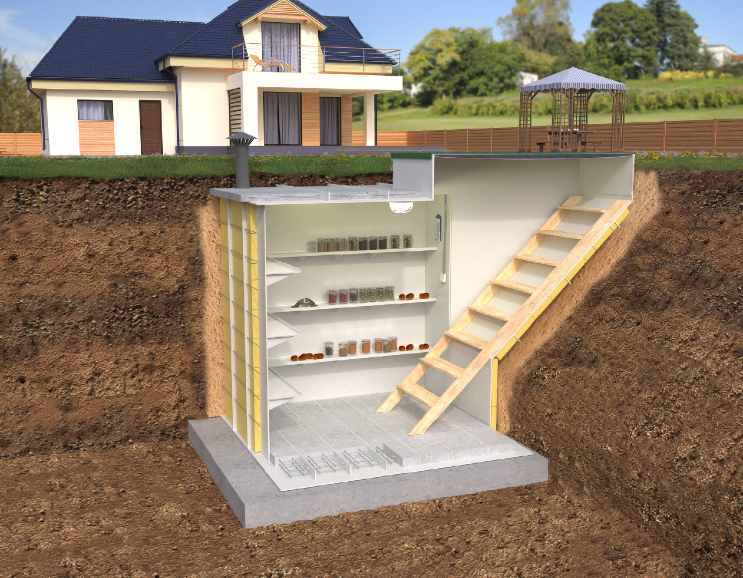 - Погреб можно установить, как отдельную конструкцию, так и встроить в помещение жилого дома.